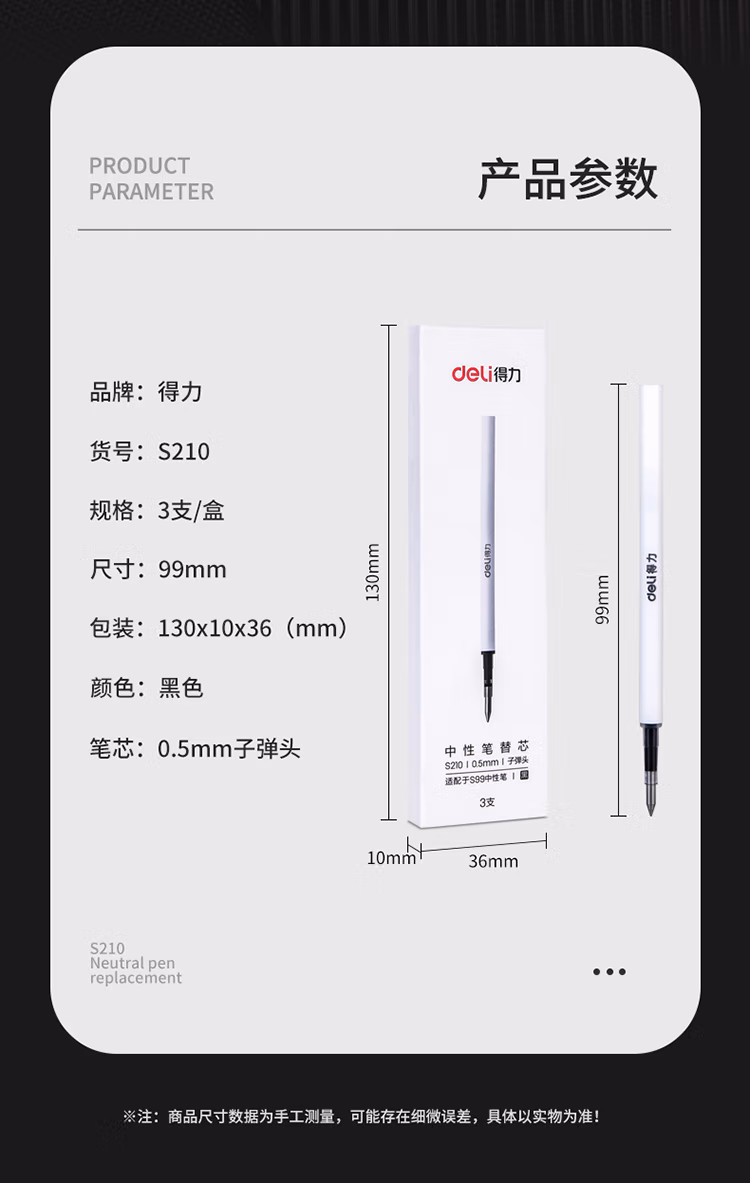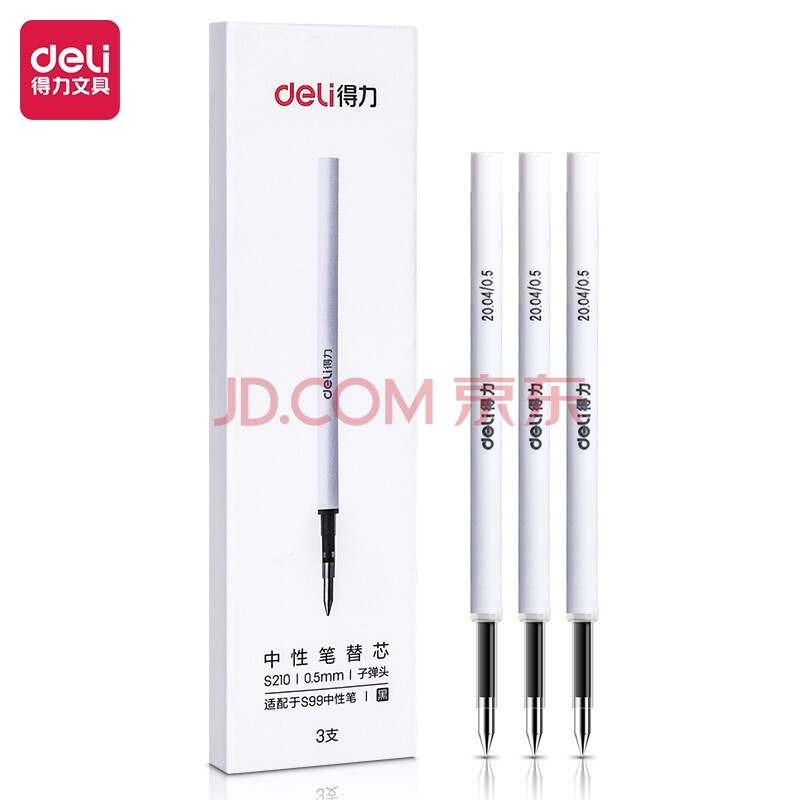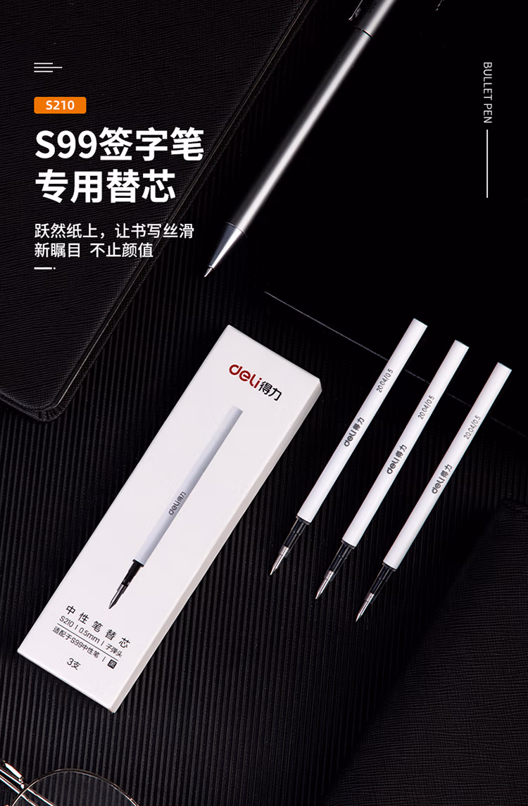 得力(deli)旋转中性笔芯 S99签字笔专用替芯 0.5mm黑色3支/盒S210 自营