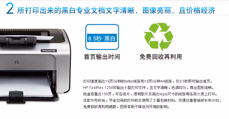 • 商品名称:惠普(HP) P1108 A4黑白激光打印机