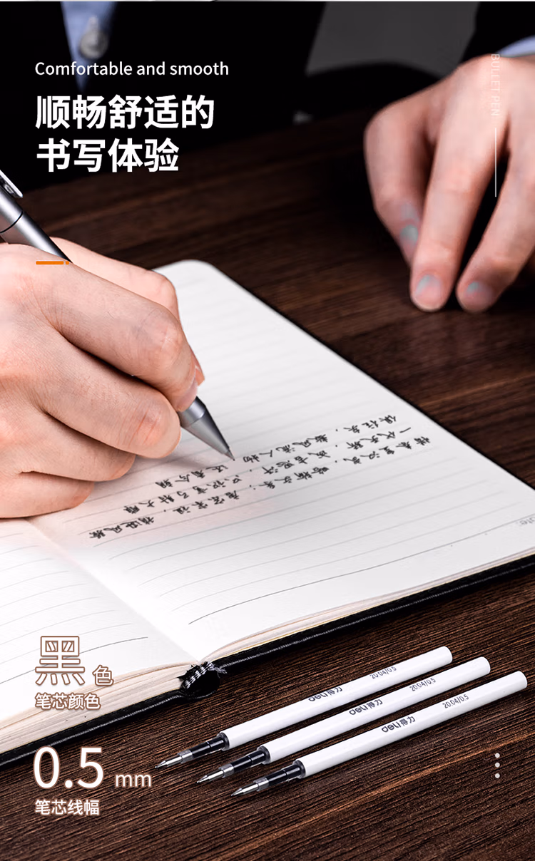 得力(deli)旋转中性笔芯 S99签字笔专用替芯 0.5mm黑色3支/盒S210 自营